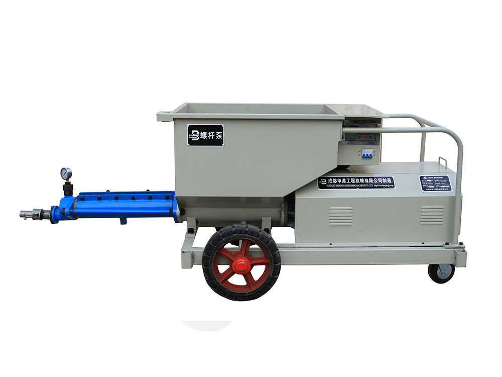 該泵結(jié)構(gòu)新穎、構(gòu)思獨(dú)特;避免了灌注稠漿較困難的不足,使用安全方便、效率高。本機(jī)主要由電動(dòng)機(jī)、減速器、輸漿體、增壓蝸桿、增壓定子、測壓、料斗、電控系統(tǒng)等組成,當(dāng)用于噴護(hù)時(shí),還包括噴射器,其特點(diǎn)如下: