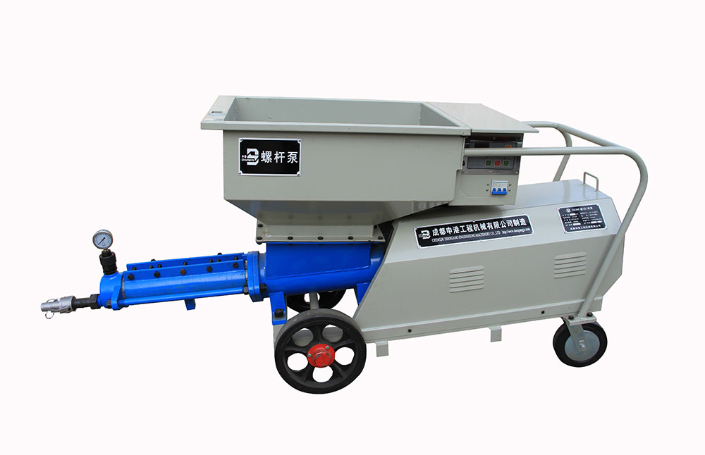該泵結(jié)構(gòu)新穎、構(gòu)思獨特;避免了灌注稠漿較困難的不足,使用安全方便、效率高。本機主要由電動機減速器、輸漿體、增壓蝸桿、增壓定子、測壓、料斗、電控系統(tǒng)等組成,當(dāng)用于噴護時,還包括噴射器,其特點如下: