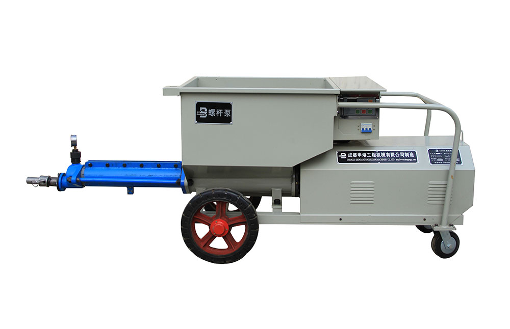 該泵結(jié)構(gòu)新穎、構(gòu)思獨(dú)特;避免了灌注稠漿較困難的不足,使用安全方便、效率高。本機(jī)主要由攪拌裝置、操作機(jī)構(gòu)、輸漿體、增壓蝸桿、增壓定子、測(cè)壓、料斗、電控系統(tǒng)等組成,當(dāng)用于噴護(hù)時(shí),還包括噴射器,其特點(diǎn)如下: