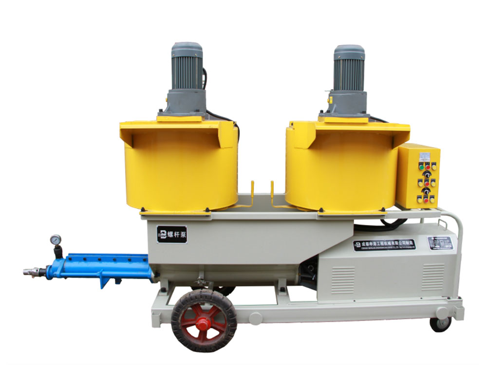 本機由攪拌機構(gòu)、增壓輸送機構(gòu)和電氣系統(tǒng)組成。增壓輸送機構(gòu)由電動機、減速器、輸送螺旋、增壓定子總成、測壓接頭、注漿管等組成。其特點如下:
