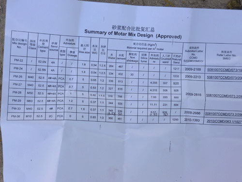 近日,蘇丹羅塞雷斯電站施工方傳回信息,對(duì)我公司生產(chǎn)的GS20E灌漿泵在電站大壩加固灌漿施工中,全面達(dá)到設(shè)計(jì)施工要求予以充分的肯定。下圖為大壩加固灌漿施工及沙漿配比單。