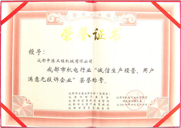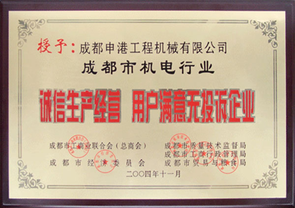 2004年度誠(chéng)信生產(chǎn)經(jīng)營(yíng),用戶滿意無(wú)投訴企業(yè)